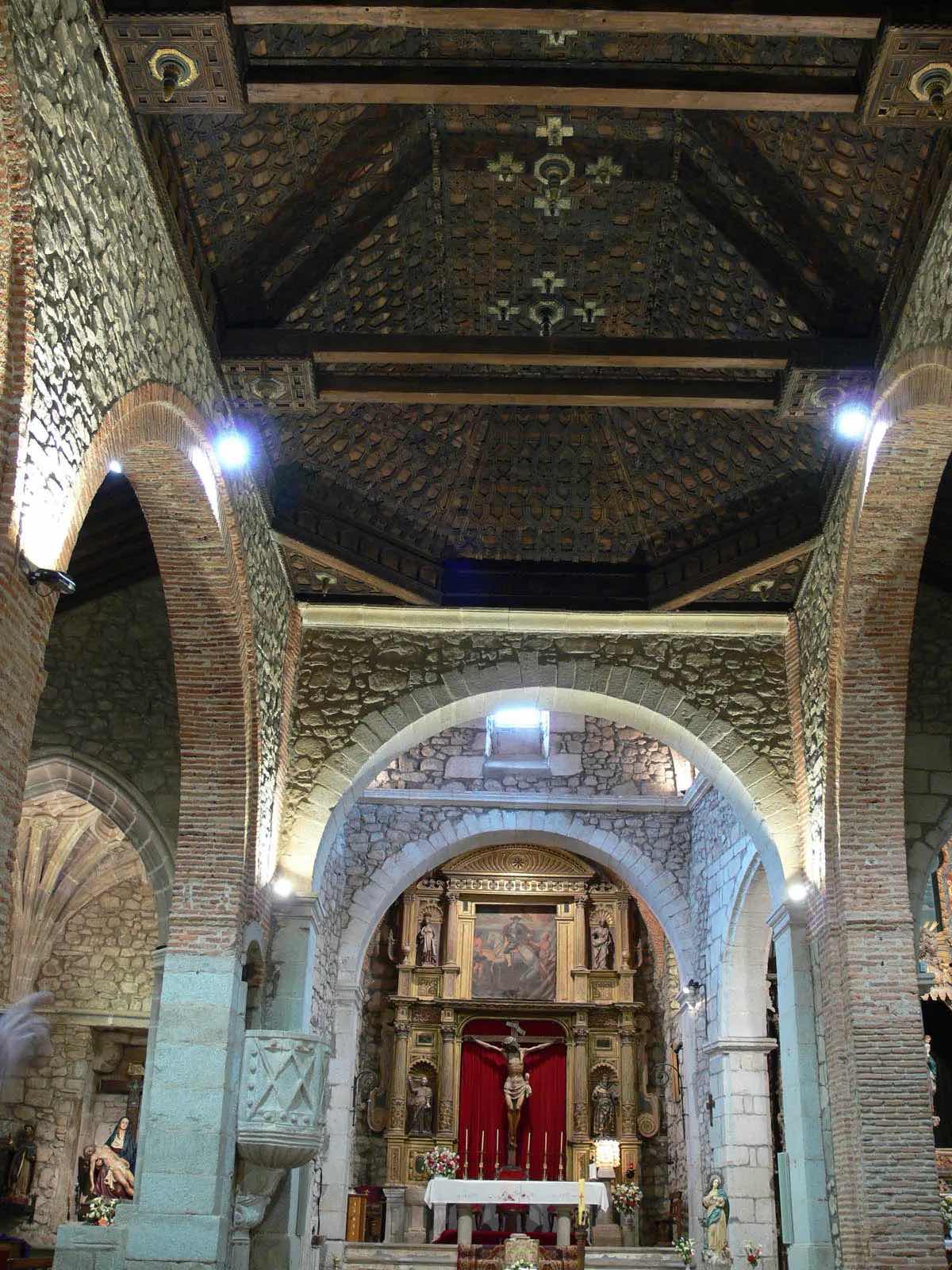 La iglesia está dedicada a S. Martín de Tours, lo que refleja, una vez más, la influencia francesa en la zona fue declarada Bien de Interés Cultural en 1981. Comenzaría su construcción en el siglo XIII, época de la que se conserva el cuerpo de naves, individualizadas mediante grandes arcos de ladrillo de estilo gótico-mudéjar y la puerta septentrional. En lo siglos siguientes se hicieron sucesivas reformas (la puerta meridional gótica, la bóveda de crucería, la torre, la capilla mayor y el cimborrio…) hasta el estado actual: en el retablo, de estilo barroco, destaca la figura del Cristo del Miserere y de San Martín de Tours. En el exterior, cuenta con un pórtico de columnas de estilo jónico del siglo XVI y una estela romana en el atrio. Destacan también la ermita del humilladero, el puente medieval y la plaza mayor con una gran fuente y un soportal de gran tamaño donde se celebraba el concejo abierto.