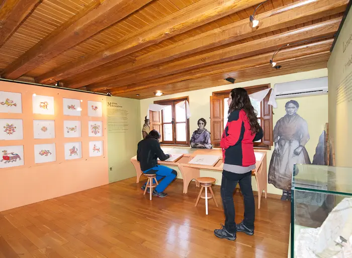 En la siguiente planta, el bordado serrano es el protagonista, donde aprenderás el significado de sus motivos y las técnicas utilizadas, lo que validó su declaración como Bien de Interés Cultural de carácter inmaterial. En la misma estancia, se puede ver una reproducción de una sala y alcoba típicas serranas.