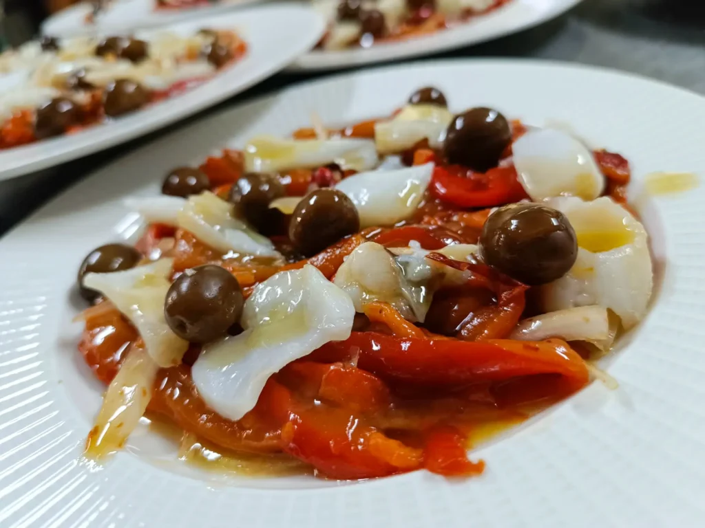 Otra de las ensaladas tradicionales de la Sierra de Francia es el zorongollo, elaborado a base de pimientos asados, que se acompañan de cebolla y se aliñan con el delicioso aceite de oliva virgen extra serrano, vinagre, sal y un ligero toque de ajo. Puede disfrutarse tal cual, como guarnición en algunos platos o incluso servirse acompañado de aceitunas, bacalao o huevo cocido. Sea como fuere, se convierte en una elaboración completamente adictiva