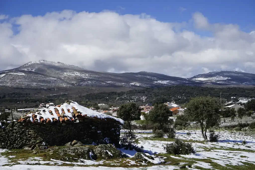 Los caminos que parten del regazo de la sierra, en dirección opuesta, discurren entre encinares, con manchas de roble, que dan forma a las tierras de sembradura y a los pastos para el ganado. Todo transcurre entre ondulaciones y recodos que a cada vuelta presentará al paseante la panorámica apacible del friso de la sierra y de la silueta de los encinares con el fondo limpio del cielo.