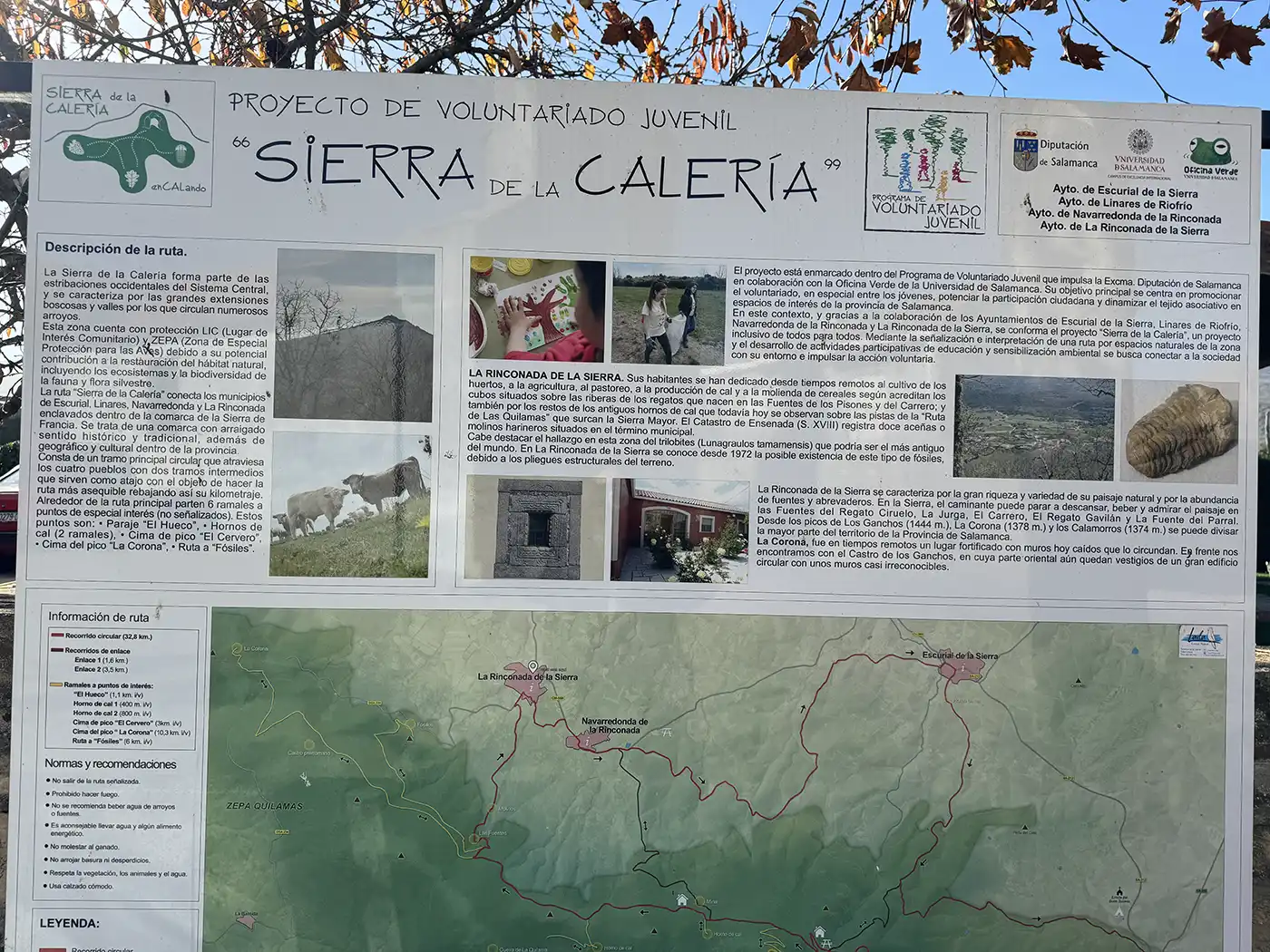 El principal atractivo de La Rinconada de la Sierra es su entorno natural. En un territorio donde el suelo es principalmente silíceo, hay una franja entre los 1.000 y los 1.300 metros de altitud donde aflora piedra caliza y por eso todos los pueblos de la Sierra de Quilamas tenían hornos de cal que luego se utilizaba para la construcción. Este es el motivo por el que esta zona norte es conocida como la comarca de La Calería. Para poder visitar los hornos y poner en valor las particularidades de este oficio se ha abierto una ruta que une los pueblos de Linares de Riofrío, Escurial de la Sierra, Navarredonda de la Rinconada y La Rinconada de la Sierra.
