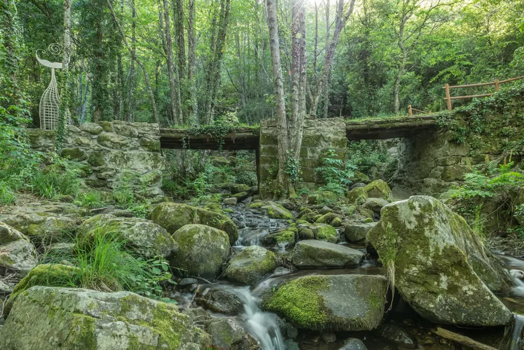 El agua ha perdurado en esta zona a lo largo de numerosos años, mientras que el sendero se ha forjado gradualmente con el transcurso del tiempo. Este camino ha adquirido una riqueza singular gracias a la incorporación de seis intervenciones escultóricas que se han integrado de manera magistral en el entorno, aportando así un elemento artístico al paisaje natural circundante. Estas obras de arte han sido concebidas con la intención de fundirse en perfecta armonía con la naturaleza, de tal manera que en ocasiones resulta arduo discernir si lo que se encuentra ante nuestros ojos es cultura o paisaje.